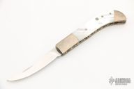 "My first knife was a filet in 1976 made from a sabre saw blade. Progressed to hunting, boot, folders in lockbacks, linerlocks, and finally automatics. Ats-34 is the primary blade steel and some Damascus from various makers. Liners and springs are of titanium and usually anodized. Some file work on blades and most liners. Various handle materials including micartas, circuit-boards, wood, stag, buffalo, ivory, pearl, and oosik." Bill is a charter member of the Florida Knifemakers Association and the local Gator Knife Club. Mentored by Frank Centofante and Mel Pardue in the 1970's.