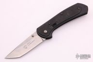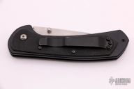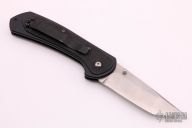 This Savant by REKAT features a stonewashed blade with dual thumbstuds. The handle has a black aluminum frame with black G-10 overlays, stainless tip up pocket clip. These knives feature the patented Rolling Lock Blade Locking System. Designed by Pat Crawford. Has a few light scratches, otherwise excellent condition.