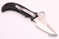 This knife by Spyderco is a Jotsingh Khalsa design, it features a satin finished blade with a thumbhole. The handle has black paper micarta scales, stainless steel liners and a stainless steel tip down clip. Nice detent and blade seating. Has a few light scratches, otherwise excellent condition.