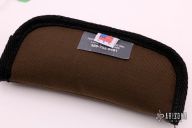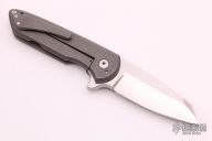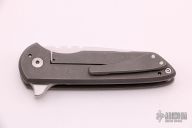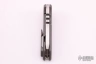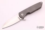 This Small Arrester by Brad Blount features a satin finished blade with notched spine and flipper. The handle is comprised of a tumble finished titanium frame with a matching tip up clip over, barrel spacer, lanyard hole. Great blade seating, detent and lock up. Comes with a zippered case. Excellent condition.