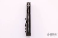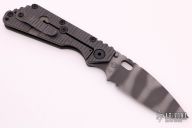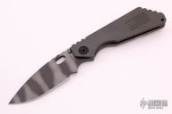 This SMF framelock folder by Mick Strider features a tiger stripe blade and a green aluminum and flamed titanium frame and tip up titanium clip. Includes a "Lock Bar Stabilizer" for maximum reverse lock retention. Nice detent, lockup and blade seating. Has flag on front scale. New from maker at the 2021 USN Gathering.