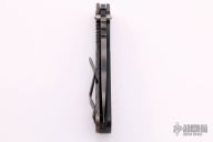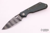 This SNG Gen1 framelock folder by Strider features a tiger stripe blade and a green G-10 and flamed titanium frame and tip up titanium clip. Nice detent, lockup and blade seating. Has some scuffs and scratches, otherwise good condition.