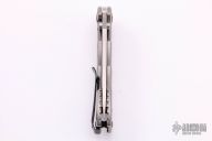 This Hinderer Designed 0562 Framelock Flipper has a drop/ spear point blade with swedge, notched thumb rest, dual thumb studs and flipper. Handle has a stonewashed titanium frame with stainless steel lockbar insert and lockbar stabilizer. Stainless steel clip is tip up. Includes original box and papers. Excellent condition. #6077