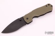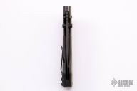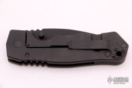This Satu Framelock from Grayman knives features a black spear point recurve blade with dual thumb-studs and notched thumb-rest. The handle has a gray G10 scale with black titanium liner and titanium lock-side, black G-10 back-spacer, and tip up titanium clip. Excellent condition. Comes with original papers.