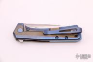This 0808 Flipper from Zero Tolerance is a Todd Rexford design. It features a satin finish clip point blade with tumbled flats and flipper. The handle is has a tumbled and two-tone anodized titanium frame over polished and anodized titanium backspacer. Custom deep carry anodized titanium tip up clip and hardware. Lanyard hole in pommel. Has some light scratches on the clip, otherwise excellent condition. Includes original box and papers. Comes with original clip and hardware.