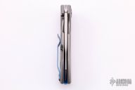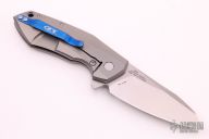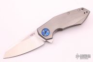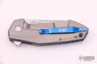 This ZT 0456 by Zero Tolerance features a satin finished clip point blade with swedge and flipper. The handle has a machined titanium frame over an anodized aluminum backspacer. Lanyard hole in pommel and after market machined titanium clip is positioned for tip up carry. Includes original box. Excellent condition. #0156.