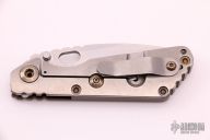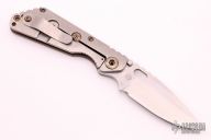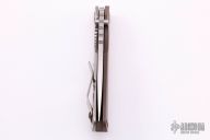 This SnG CC by Strider Knives features a stonewashed blade and smooth brown G-10 with stonewashed titanium frame and tip up clip. Notches on thumbrest, rear of handle, and lockup. Includes Hinderer "Lock Bar Stabilizer" for maximum reverse lock retention. Has anodized hardware. Excellent condition.