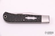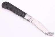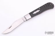 This Back Pocket Slipjoint by Dwayne Chancellor features a hand rub satin finished blade with nail nick. The handle has stainless steel bolsters and liners, A2 steel spring and jigged black paper micarta covers with a stainless steel escutcheon. Has half-stop, flush in all positions. New from maker.