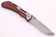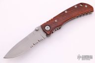 This Harsey T1 Tactical by Lone Wolf Knives features a bead blast finished spear point blade with false top edge and partial serrations, notched thumbrest and dual thumbstuds. The handle has rosewood scales, stainless steel liners and tip down clip. Comes with a zippered case. Has a few light scuffs, otherwise excellent condition.