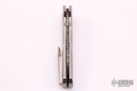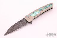 This Malibu by Pro-Tech features a Chad Nichols High Carbon "Mind Meld" Pattern Mosaic Damascus blade with flipper. The handle has an orange peel finished and anodized titanium frame with abalone inlays, anodized and orange peel finished titanium backspacer and 3D milled titanium clip. Comes with original box and papers. Excellent condition. Dated June 2021.
