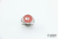 Indian Motorcycle Ring 925 Sterling Silver Rhodium plated with red epoxy resin inlay. Size: 12.5. New from maker.