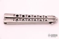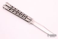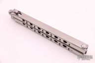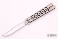 This Model 43 by Benchmade features a tumble finished blade. The handles are satin finished titanium with spring latch. Has a few light scratches otherwise excellent condition. Coems with original nylon sheath.