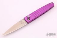 This 1000 Spike by Benchmade features a satin finished blade. The handle is comprised of a pink anodized aluminum handle. Comes with a nylon sheath. Strong coil spring action. Excellent condition.