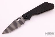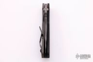 This SNG framelock folder by Mick Strider features a tiger stripe blade and a dimple pattern black aluminum and flamed titanium frame and tip up titanium clip. Includes a "Lock Bar Stabilizer" for maximum reverse lock retention. Nice detent, lockup and blade seating. New condition.