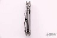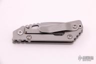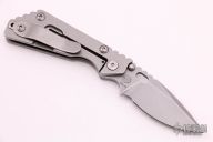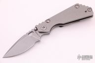 This PT by Mick Strider features a stonewashed blade with notched thumbrest and thumbhole. The handle has a stonewash finished titanium frame with matching tip up clip. New condition.