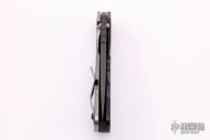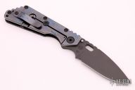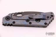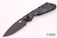 This SMF framelock folder by Mick Strider features a black blade and a camo aluminum and laser engraved titanium frame and tip up titanium clip. Includes a "Lock Bar Stabilizer" for maximum reverse lock retention. Nice detent, lockup and blade seating. New from maker at the 2021 USN Gathering.