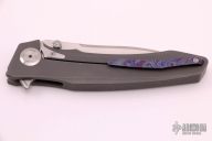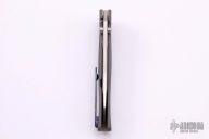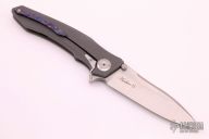 This MidnightCat Amber-II features a satin finished blade with dual thumbstuds and a flipper. The handle has a bead blast finished integral titanium frame with zircuti pivot and tip up clip. Has some scuffs and scratches, otherwise good condition.