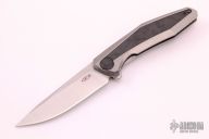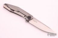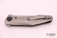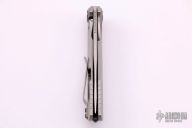 This 0470 Sinkevich designed folder from Zero Tolerance features a drop point blade with swedge. The frame is comprised of tumble finished titanium, a marbled carbon fiber inlay and anodized aluminum back spacers. Titanium pocket clip can be adjusted for left or right hand carry. Has a few light scuffs, otherwise excellent condition. #1150.