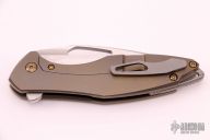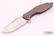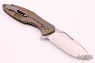 This Arius by Koenig knives features a two-tone blade with thumbhole. The handle has a nicely milled and anodized titanium frame, tip up clip with hidden screws and titanium backspacer. Has ceramic bearings and a ceramic detent ball. Nice detent, lockup and blade seating. Comes with original box and COA dated July 12th, 2021. Excellent condition.