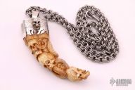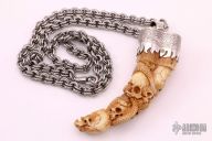 Handmade .925 Pendant w/ carved warthog Tusk and a stainless steel chain. The chain is 13" long. New from maker.