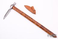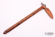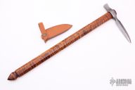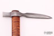This Spontoon Axe by Pawel Surdel features a hand forged head with hammer pole made of Damascus, 9" from pole to tip. Has a 21.75" octagonal curly maple handle. Comes with a leather blade cover. Excellent condition.