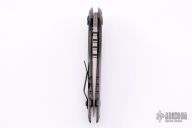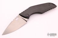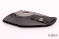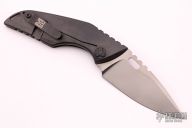 This MSC SJ75 Stealth from Mick Strider has a black blade and a black titanium frame with a matching tip up black titanium clip. Notches on blade spine and inner edges of frame along the spine. Nice detent, lockup and blade seating. Comes with a padded and zippered case. Excellent condition.