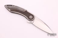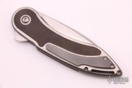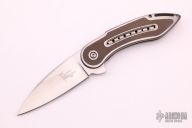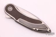 This Early Glimpse linerlock flipper by Todd Begg features a hand-rubbed satin finish blade and a titanium frame with brown canvas micarta inlays. The frame has a satin finish on the flats and a bead blast finish on the edges and clip. Smooth action with a nice detent, lockup and blade seating. Has some light scratches and scuffs, otherwise good condition.