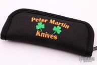 "My name is Peter Martin and I have been making knives for over 20 years and I'm a voting member of the Knifemaker's Guild. Sold my first knife in 1988, started hand forging steel in 1989, and my own Damascus in 1992. I believe in sole authorship and I stand behind my knives 100%.All of my knives are handmade 1 at a time. Forge welding the damascus billets, patterning and shaping the blades is performed solely by myself to ensure the finest quality control. I've spent a lot of time and resources researching and testing for proper heat treatment of my blades and I can guarantee that they are heat treated to perform to the best of their abilities for which they were intended. I select only the best natural handle materials available at the time. I have no "get by" factor. It's either the very best or it's not used. My knives, are just that, made by me down to the smallest detail. On occasion I will allow other qualified artists to perform engraving or scrimshaw work on my knives."