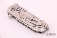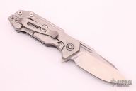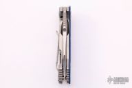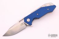 This Half Track from Hinderer Knives features a stonewashed bowie blade with swedge, fullers, notched thumbrest and flipper. The handle has a titanium frame complemented by a blue G-10 scale. Titanium clip is positioned for tip up, right hand carry. Comes with original box.  Excellent condition.