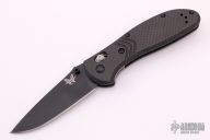 This Griptilian by Benchmade features a black blade with a plain edge. The handle has carbon fiber scales with inlaid stainless steel liners, brass barrel spacers. The pocket clip can be reversed for right or left tip up carry. The AXIS lock system makes the knife easy to open and easy to close. Comes with original box and papers. Excellent condition.