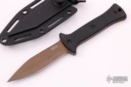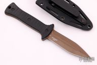 This boot knife by Zero Tolerance features a bronze double-edged blade with .123" blade stock and .905" blade depth, and a textured G10 handle for grip. Comes with original kydex sheath. Has some scuffs, otherwise good condition.