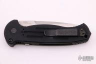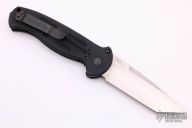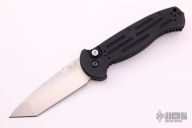 This 9052 AFO II Auto by Benchmade has a stonewashed tanto blade with a false top edge. Black anodized aluminum handle. Integrated safety system. Black stainless steel clip - 4 way reversible, and lanyard hole. Has a few light scuffs, otherwise good condition.