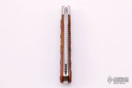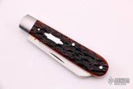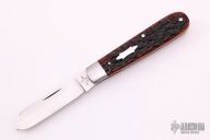 This slipjoint from T.A. Davison features a hand rub satin finished drop point blade with a single nail nick. The handle has satin finished stainless steel bolsters, cherry jig bone covers, stainless steel liners and a stainless steel spring. Coin edge liners. Spring is flush in the closed, half stop, and open position. Nice blade seating and function. Comes with zippered case. Directly from the maker!