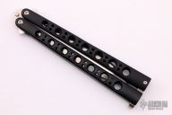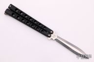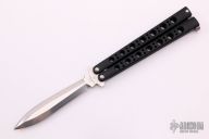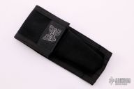This Model 46 Bali-Song by Benchmade has a dagger blade with a false top edge. Has black coated titanium handles with T-latch. Comes with Benchmade sheath. Has a little bit of wear near the latch, otherwise excellent condition.