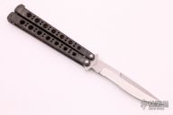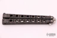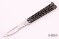 This Model 42S by Benchmade features a satin finished partially serrated blade. The titanium handles have been given a "Striderized" flamed finish with T-latch. Comes with original sheath. Has some scuffs, otherwise excellent condition. One of One as per Josh Lee.