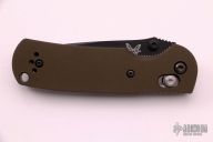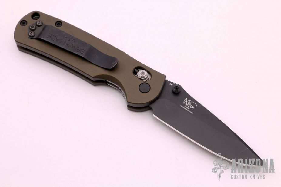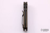 This Mini Griptilian by Benchmade features a black coated clip point blade with dual thumb studs and notched thumb rest. The handle is comprised of titanium scales over stainless steel sub frame, black coated, stainless steel tip up clip is reversible for right or left hand carry. Has some minor wear on the clip, otherwise excellent condition.