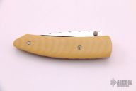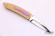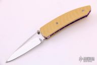 I have been a knifemaker since 1995. Since then I have been hooked on knifemaking. My knowledge in knifemaking comes from working with Butch Vallotton and Rainy Vallotton, corresponding with other knifemakers and not the least learning by trial and error. I really like the challenge of folder making. The precision and tools needed really makes it a very interesting job. I have chosen to make folders with linerlocks with ist's simple yet very reliable mechanism that have no moving parts. I like strong and solid folders so I use .050"" thick liners on all linerlocks with blade over 3"". This makes a very strong folder On the smaller knives I use .040"" liners unless you want it different. I prefer using synthetic materials for scales on my folders. I like the way Micarta, G10 and carbon fiber looks and performs on them and it leaves out any shrinking and shifting of the materials. I use some natural materials from time to time such as Pearl and Mammoth ivory. I like bolsters and offer them on most of my folders. These can be left handrubbed or polished. I make all my pocketclips my self and design one for each model I make. On the pictures you might find different clips for the same model as I have tried several designs on most models but in the end I decide on one clip design.for each model. I design all my folders in a CAD program to be able to get the design as efficient as possible. By using this method I can control every little detail down to a fraction of an inch and it provides me with exact blueprints for each part. One detail commonly overlooked in folder making is the blade to handle ratio. I feel it is very important to have as much blade as possible in a folder. All my models at this moment are designed with a thumb stud but I have made a few of them with a nailnick to as an option. If you have a special request just ask.