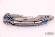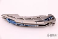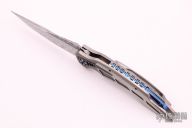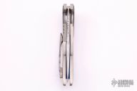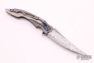 This Curv Flipper by Ron Best features a Damasteel blade with flipper. The handle has a titanium frame with anodized titanium backspacer, tip up titanium clip, zirconium pivot collars, anodized titanium hardware. Rides on bearings, nice detent, lockup and blade seating. "Ronald Best 7-19-20" inside the frame. Comes with original box. Excellent condition.
