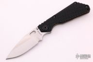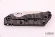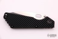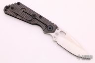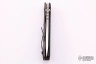 This SNG framelock folder by Mick Strider features a stonewashed blade with satin 3/4 grind and a gunner grip black G10 and flamed titanium frame and matching tip up titanium clip. Includes a "Lock Bar Stabilizer" for maximum reverse lock retention. Nice detent, lockup and blade seating. Excellent condition.