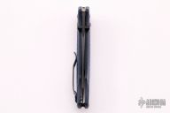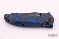 This Osborne designed Rift from Benchmade features a black coated blade and sculpted black/blueG10 handle. Black stainless steel liners and tip up reversible clip. Includes original packaging, slip case and paperwork. Excellent condition.
