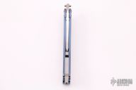 This Gargoyle V2 balisong by Terry Guinn features a satin finished blade. The handles are two-tone anodized titanium with a matching spring latch and backspacers. Features IKBS. Marked "Terry Guinn CG-019" inside spacer. Comes with zippered case. Excellent condition. 19 of 20 that were made.