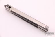 This RARE balisong by Benchmade features a black Boron Carbide coated double edged kris blade with scalpel edges, this knife has no safe handle for knife manipulation. The integral handles are satin finished stainless steel with carbon fiber inlays and a spring latch. #19 of 50 on blade. Comes with original box and papers. Has a couple of very light scratches, otherwise excellent condition. VERY RARE.