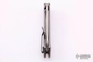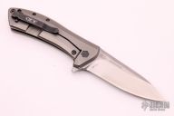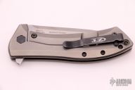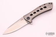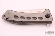 This 0801TI is a Todd Rexford design executed by Zero Tolerance. It features a tumble finished drop point blade with swedge and flipper. The handle is comprised of a titanium frame over black stand-offs. The black coated, deep carry clip can be positioned for left or right hand tip up carry. Excellent condition. #2214 Comes with original box and papers.