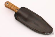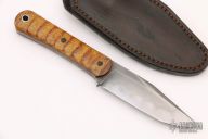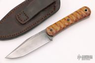 This Utility Knife by Michael Shiffer features a hand forged blade with hamon and fileworked thumbrest, .157" blade stock and 1.002" blade depth, full tang construction with vintage natural canvas micarta scales and black canvas micarta pins. Comes with a brown leather sheath and COA dated October 8, 2021. New from maker.