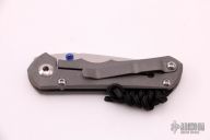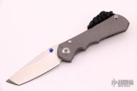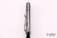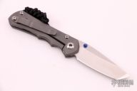 This Small Inkosi from Chris Reeve Knives features a tumble finished tanto style S45VN blade with dual anodized thumb studs and notched thumb rest. The handle is comprised of a bead blasted titanium frame over a single barrel spacer with a matching bead blasted titanium tip up clip. Includes original box and COA dated September 29, 2021. Excellent condition.