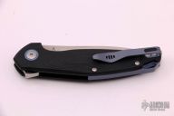 Goccia it's a flipper designed by Jens Anso, with clip and spacer in blue anodized titanium, stainless steel screws and blue anodized titanium ring on pivot screw and liner lock blade lock type.