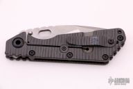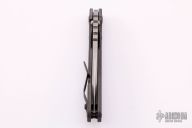 This SMF by Mick Strider features a nightmare tanto ground blade with a notched thumbrest and thumbhole. The handle has a flame finished titanium frame with a matching MSC tip up clip. New from maker at the 2021 CCKS. Comes with zippered case.