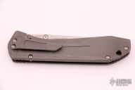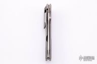This Ti Monolock by Benchmade features a tumbled drop point blade with single thumbstud. The handle is bead blasted titanium with tip down clip and stainless steel barrel spacers. Nice detent, lockup and blade seating. Has ball bearings. Comes with original box and papers. Has some scuffs and scratches, otherwise good condition.