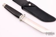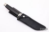 This Tanto by Larry Mensch features David Boye's Dendritic Cobalt, it features a satin finished tanto blade with .144" blade stock and 1.219" blade depth, hidden tang construction. The handle has a nickel silver guard and butt with a blackwood grip with black spacers. Comes with a black leather sheath and a zippered case. Excellent condition.