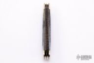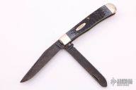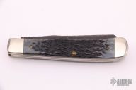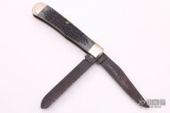 This slip joint folder by Case Knives has been customized by David Yellowhorse. It features two clip point etched "Native Steel" blades by David Yellowhorse with nail nicks. The handle has nickel silver bolsters, front and rear, blue jigged bone covers, brass liners and stainless steel springs. Comes with a zippered case. Excellent condition.